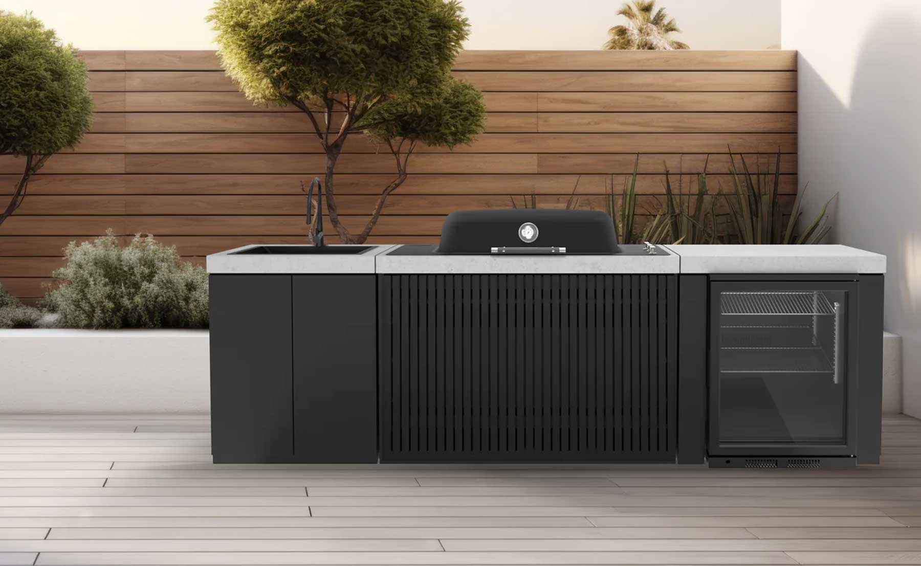Everdure hat sich als Grillhersteller einen Namen gemacht – die Seabreeze Outdoorküche des Herstellers verbindet modernes Design mit maximaler Flexibilität. Das modulare System ermöglicht individuelle Konfigurationen – von der kompakten Zeile bis zur großzügigen Kochinsel. Hochwertige Materialien wie pulverbeschichtetes Aluminium in Marinequalität und gesinterter Stein sorgen für Langlebigkeit und eine elegante Optik. Dank integrierter Rollen, verstellbarer Füße und durchdachter Verbindungselemente lässt sich die Küche einfach positionieren und erweitern. Die einfache DIY-Montage macht den Einstieg in die eigene Outdoorküche unkompliziert und schnell umsetzbar.